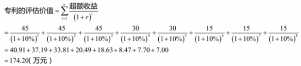 超额收益R=(使用专利权技术产品的价格P-不使用专利权技术产品的价格P)x销售量Qx(1-所得税率T)