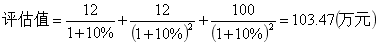 某企业持有非上市企业债券100万元,票面利率为12%,按年付息,到期还本。该债券尚有两年到期,前3年利息均已入账,如果折现率取10%,则该债券价值最可能是( )