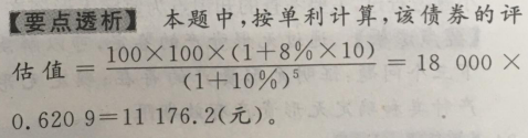 某公司持有10年期债券100张,每张面值100元,票面利率8%,到期一次还本付息,不计复利。评估时债券的购入时间已满5年,经分析确定的折现率为10%。则该债券的评估值( )