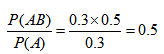 已知P(A)=0.3,P(B)=0.5,当A、B相互独立时,P(B|A)=( )