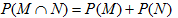 可见,N∩M=ϕ,P(M∩N)=0, P(MUN) =P(M) +P(N)-P(MN)=P(M)+P(N)