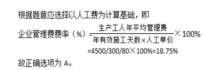 某施工企业的企业管理费费率以人工费为计算基础,其生产工人年平均管理费为4500元,年有效施工天数为300天,人工单价为80元/天,人工费占分部分项工程费的比例为25%,则该企业的企业管理费费率为( )