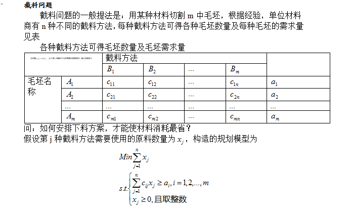 一加工厂现有一批长度5米的钢管(数量充分多),为制造零件的需要,要将它们截成长度分别为140厘米、95厘米和65厘米的管料。另外,这三种管料要按2:4:1的比例配套生产。现在要生产a件产品,问:应如何截料才能使截下来的三种管料既能满足配套使用的需要又能使剩余材料最少?(只求模型,不求解)