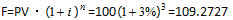 本题考查复利终值的计算。根据题意,利率i=3%,计息期n为3年。