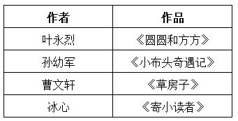 本题考查中国儿童文学家及其作品。根据题干和选项可列出下表,故本题答案选B。