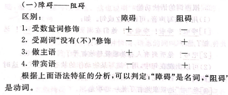 “障碍”是动词,“阻碍”是名词。