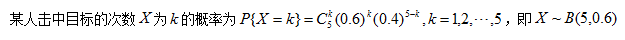 某人每次射击时击中目标的概率为0.6,独立地进行了5次射击,则击中目标的次数X服从()