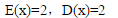 本题,X~P(2),故E(X)=2,D(X)=2.