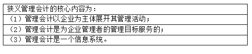 本题可从“狭义”“管理会计”“核心内容”入手。
