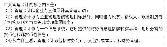本题可从“广义”“管理会计”“核心内容”入手。
