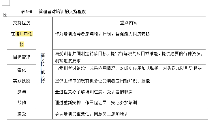 承认培训重要性,允许员工参加培训是管理者对培训最低程度的支持