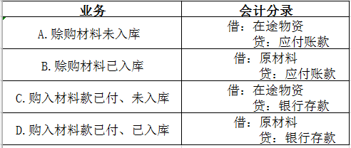 购入材料款已付、未入库